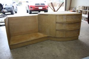 There was some water damage on one side’s bottom, and it was missing the glass and mirrors when I got it. I didn’t know anything about glass or mirrors – so this sat in my garage for a while.