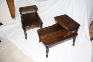 The top of one of the end tables was very warped and curved. My solution was to cut the top right where the curve was causing the wood to split. I removed less than a 1/4″ of width to the top portion of the table, and wasn’t noticable.